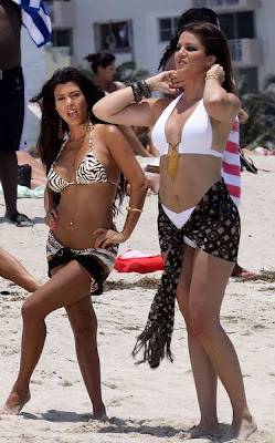 Kourtney Kardashian and Khloe Kardashian in a bikini at the beach in Florida.